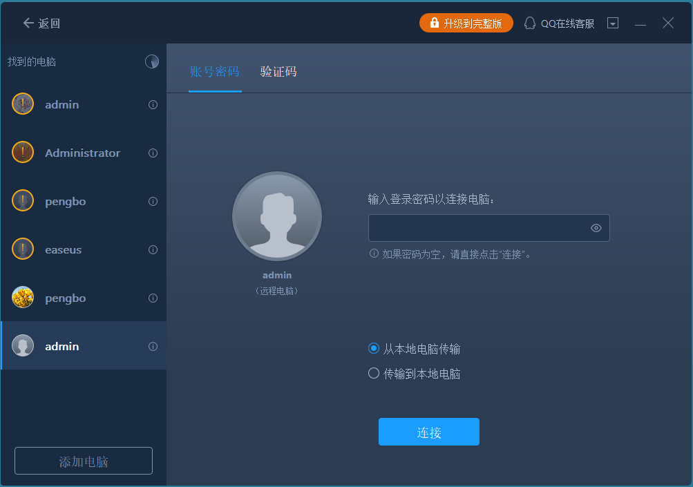 该产品将列出正在运行易我电脑迁移的电脑。选择要连接的电脑。