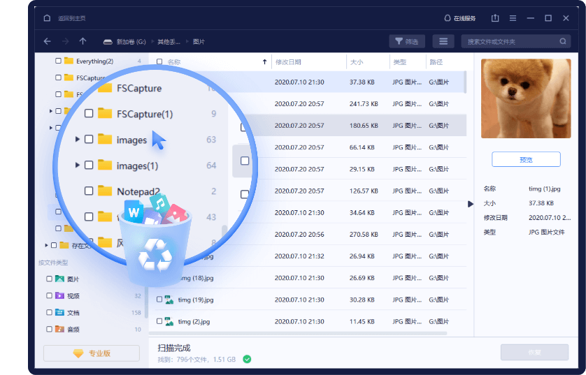 非常好用的一款数据恢复软件!回收站清除的照片竟然都帮我找回来了,简直是太不可思议了,我一度认为我永久失去了这些珍贵的照片,简直带给我太多惊喜。