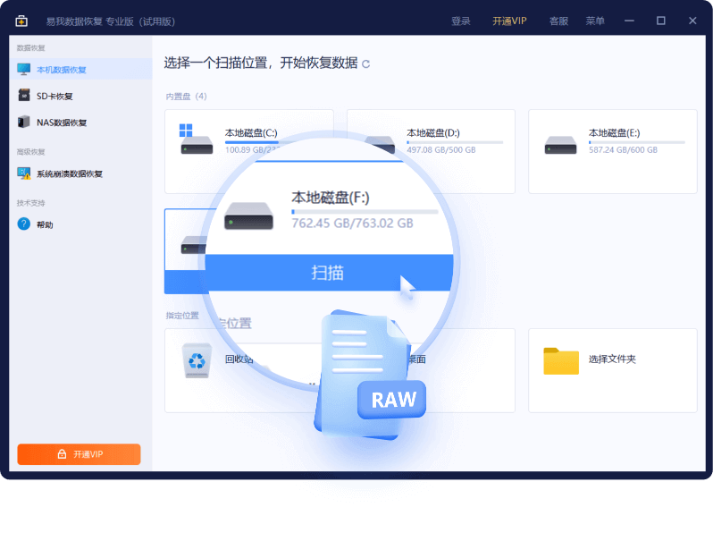 分区变RAW无法正常访问,如何恢复数据?易我数据恢复软件支持从无法访问的RAW分区恢复数据。