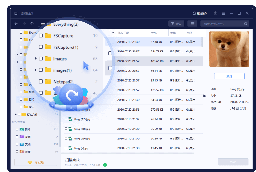 专业NAS服务器数据恢复软件,几乎支持恢复所有品牌NAS上的各种文件类型。